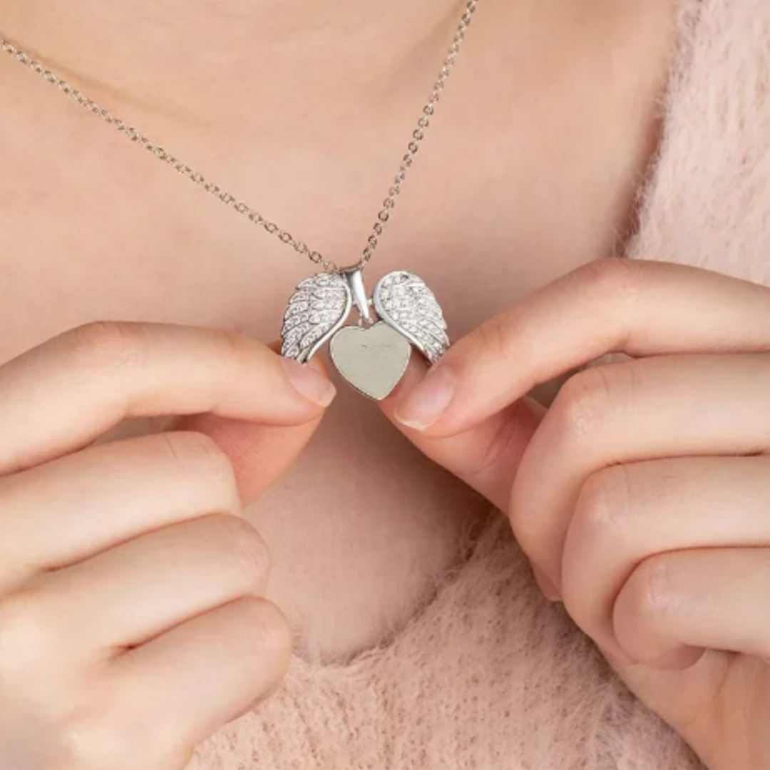 Un cuore custodito tra ali che si aprono.
